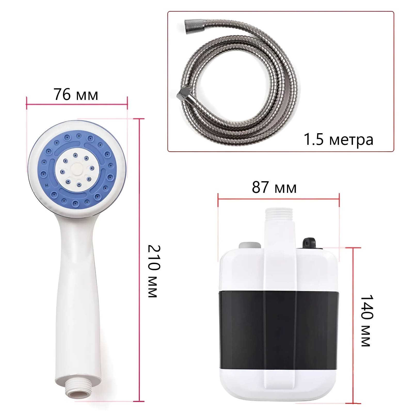 Александр Очень удобный душ. Аккумулятор хорошо держит. Занимает мало места. Очень легкий.