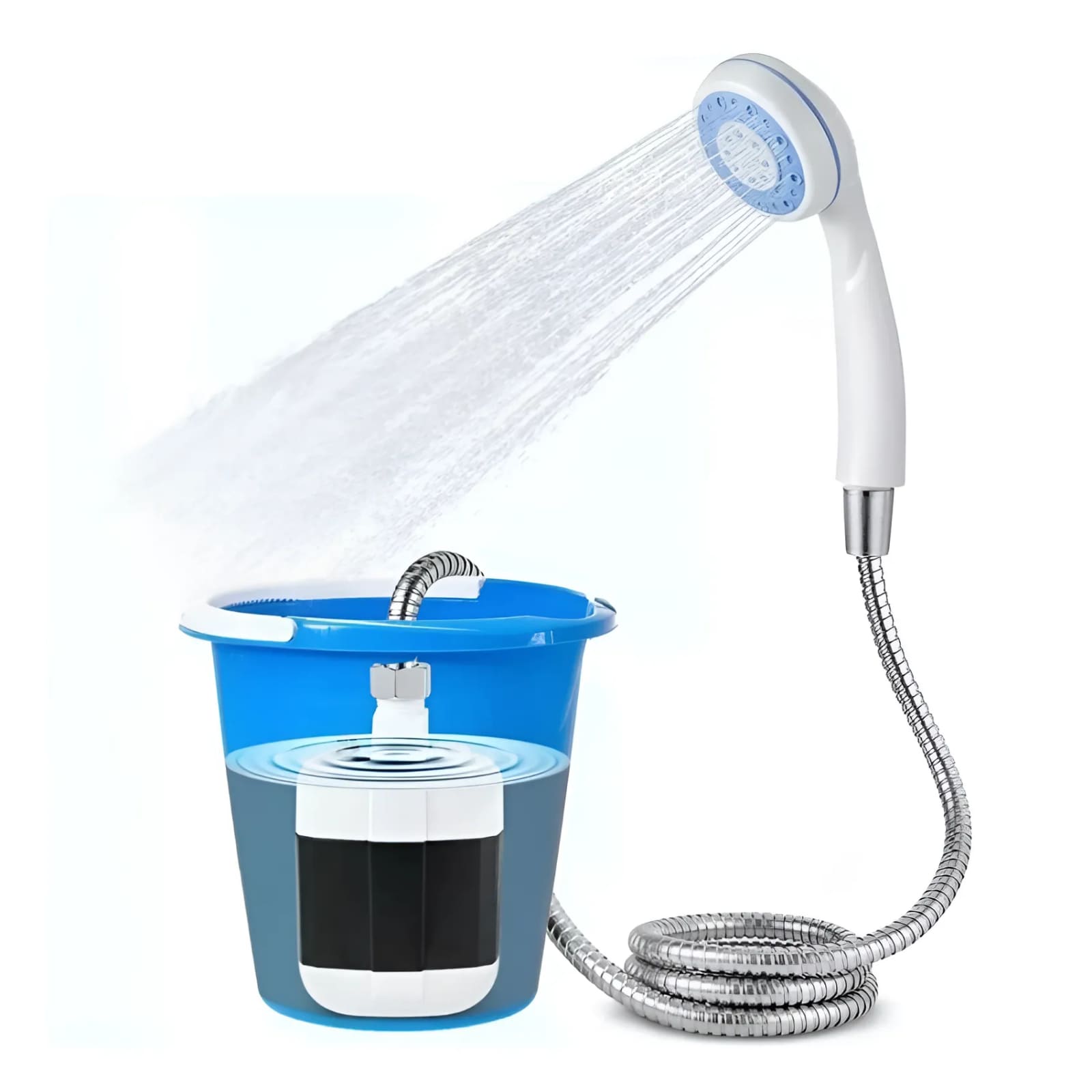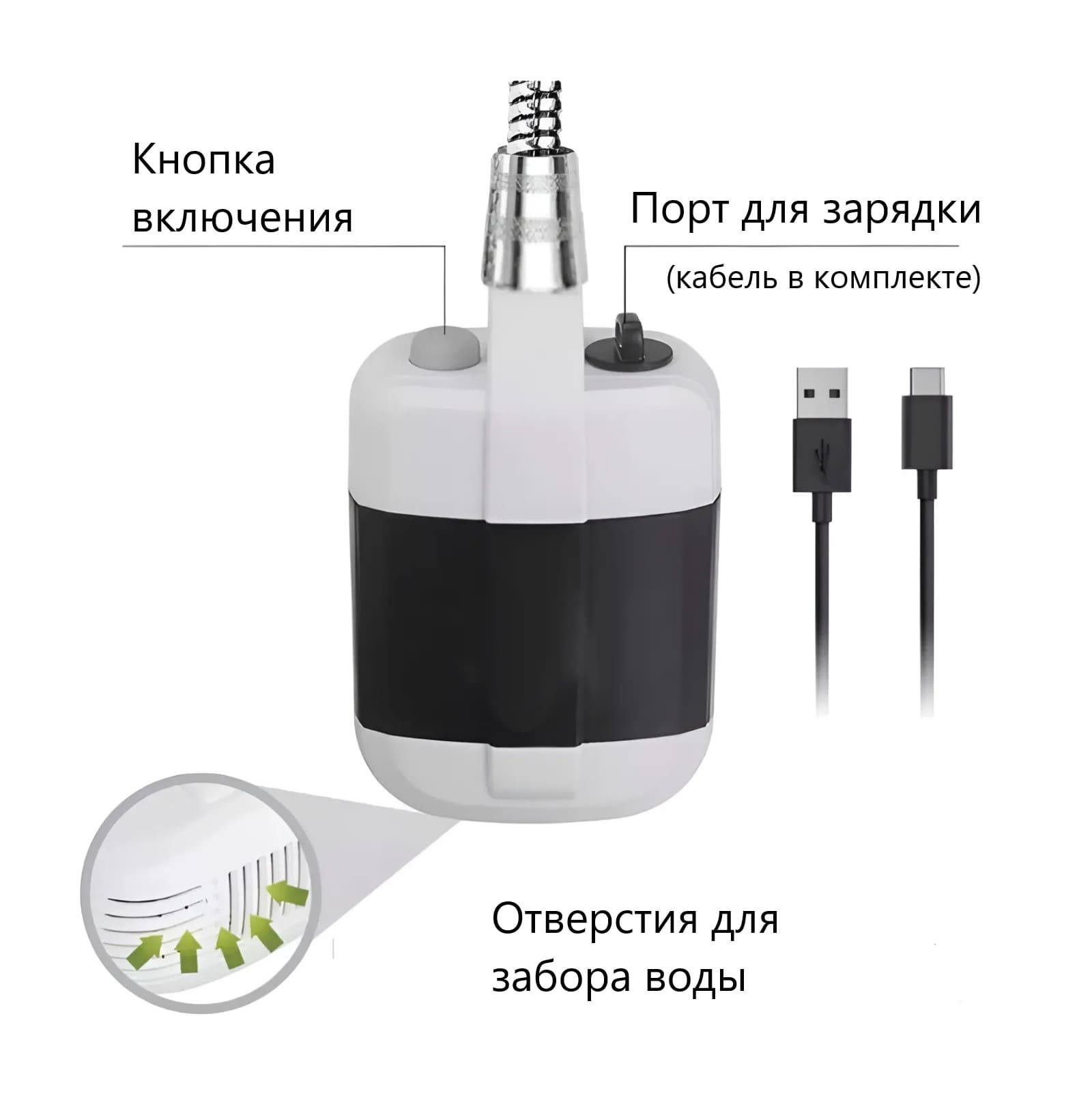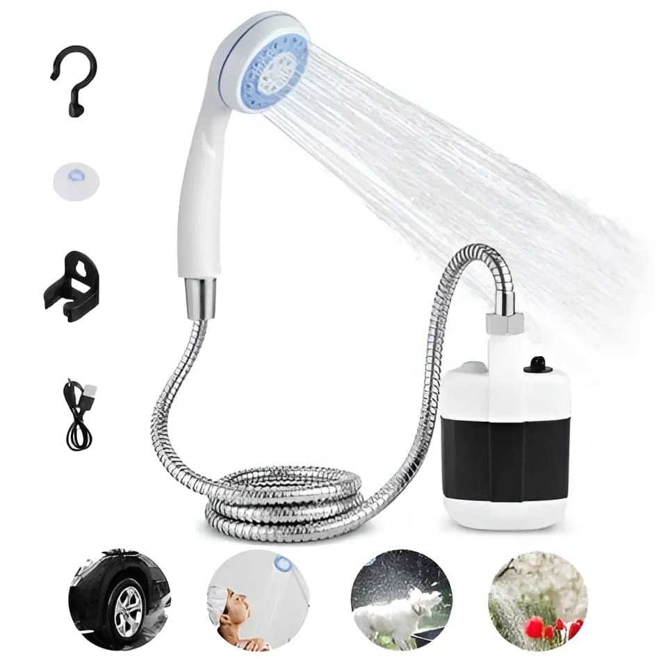Все остальное для комфортного использования входит в комплект. Заранее заряженный душ нужно включить, сразу поместив насос душа в воду, а затем использовать.